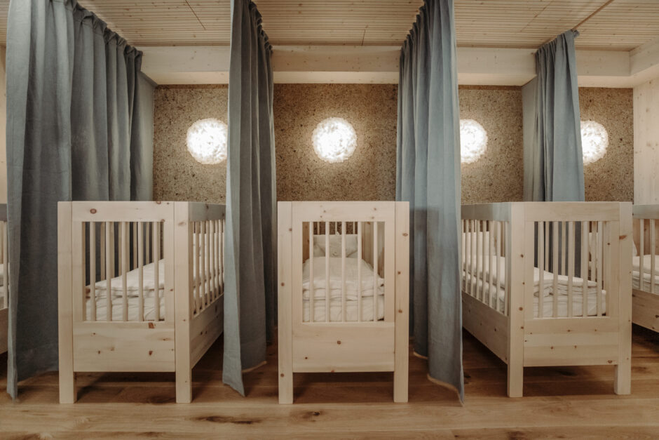 Um auch die Zeit der Partnerschaft im Urlaub genießen zu können, nutzen Sie gerne unseren betreuten Kinderhof. Täglich sind unsere geschulten und ausgebildeten Betreuer von 09.00 bis 21.00 Uhr für unsere kleinen Gäste da. Willkommen sind alle Kinder ab dem ersten Lebensmonat. Unser Tipp: Für einen wohltuenden Schlaf sorgt unser Schlafraum im Kinderhof. Gebettet auf einer Bio Matratze in Zirbenholz Gitterbettchen und durch die Heutapeten ist die Zeit im Träumeland gesichert.