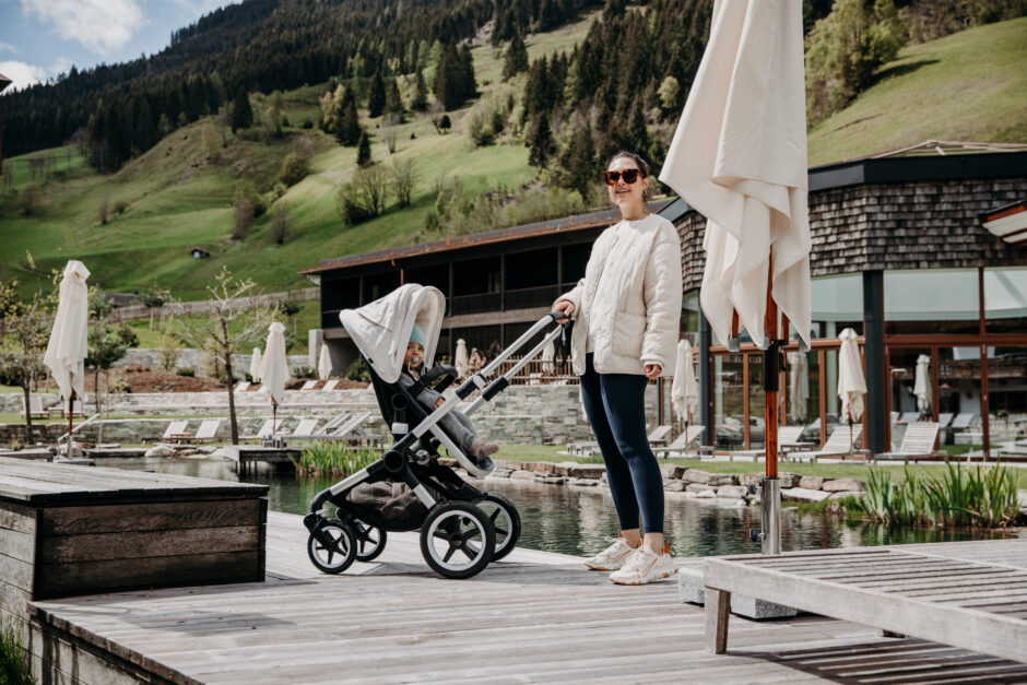 Vor Ort erhalten Sie einen Kinderwagen von bugaboo, Ihre Suite ist mit einem Gitterbettchen ausgestattet und der Hochstuhl steht im Restaurant bei Tisch schon bereit. Was noch fehlt? Ihr kleiner Schatz!