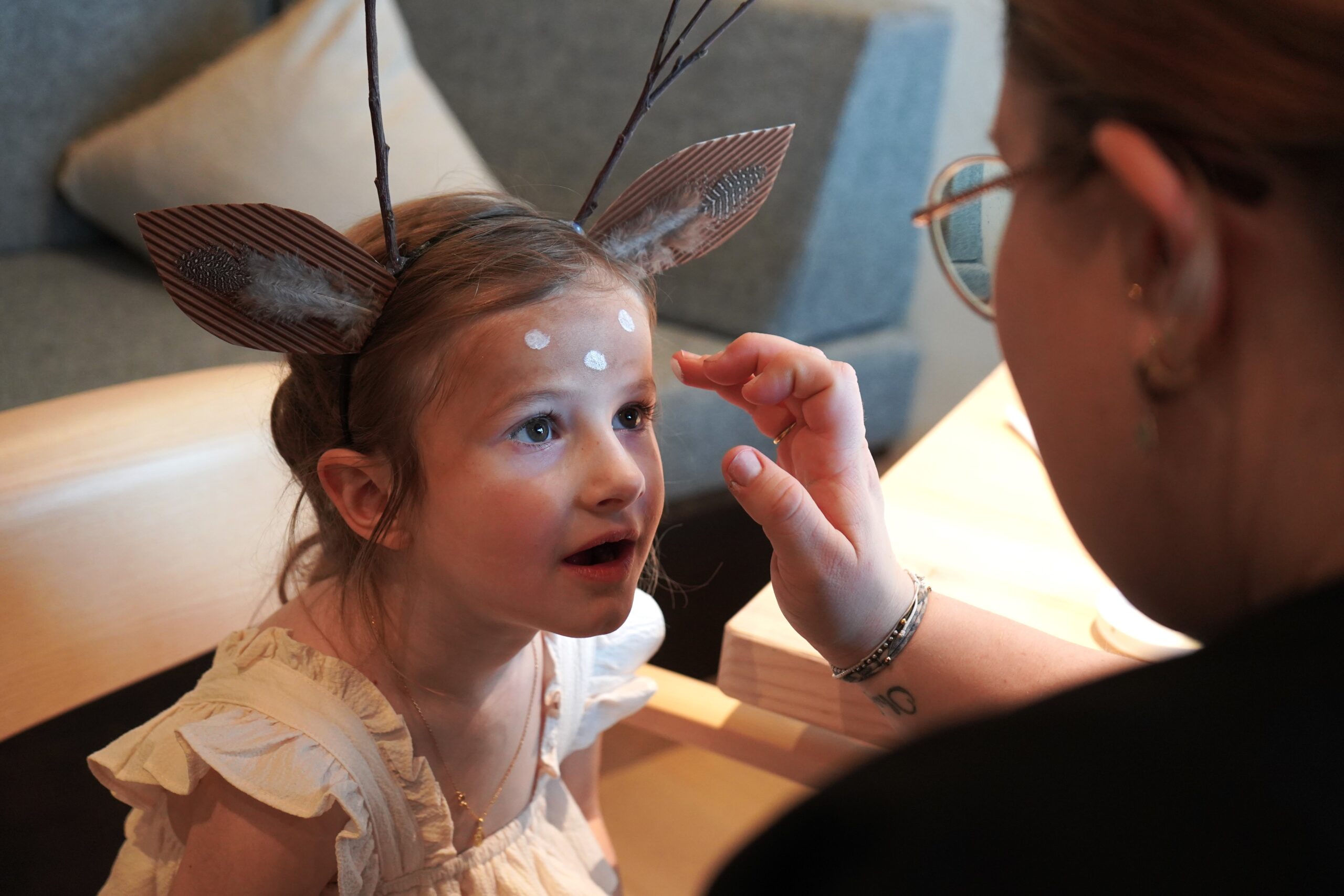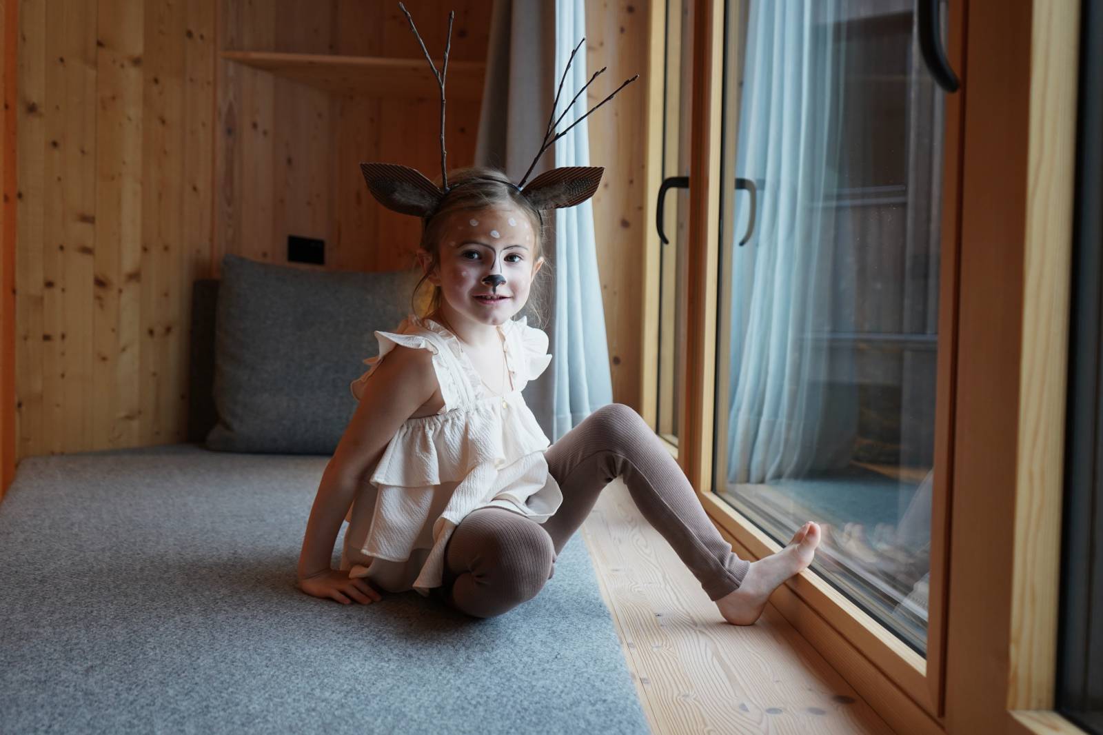 - Braune oder beige Kleidung tragen, ein bisschen Schminke ins Gesicht und fertig ist das Rehlein.