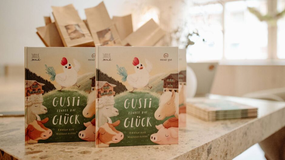 Das Geschwisterpaar Rosa und Toni bekommen in ihrem Urlaub am Moar Gut durch außergewöhnliche Umstände besondere Kraft verliehen, mit Tieren sprechen zu können. So verstehen sie auch unseren Haushahn Gusti und erleben mit ihm spannende Moar Gut Abenteuer.