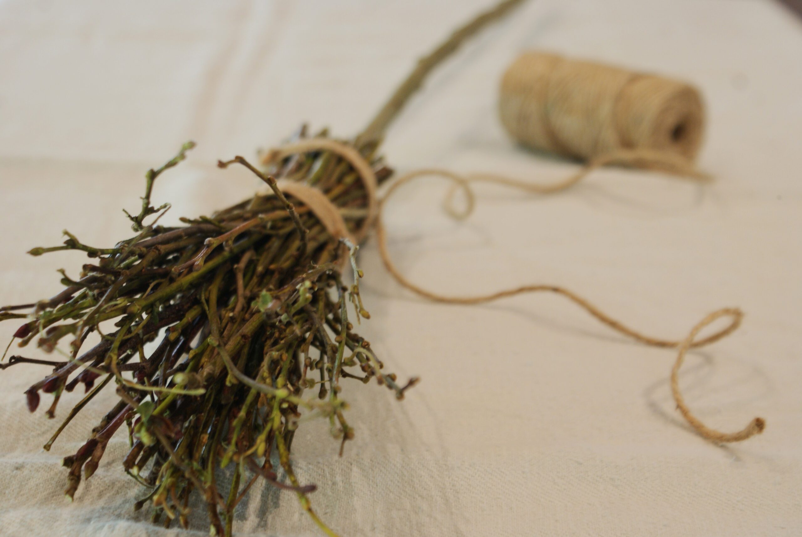 - Zum Schluss alles mit einer Juteschnur an 2 Stellen fest umwickeln und verknoten
