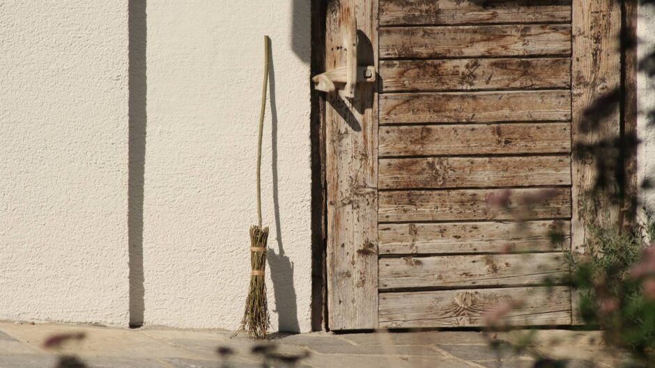 - Einen dickeren, langen Ast als Besenstiel