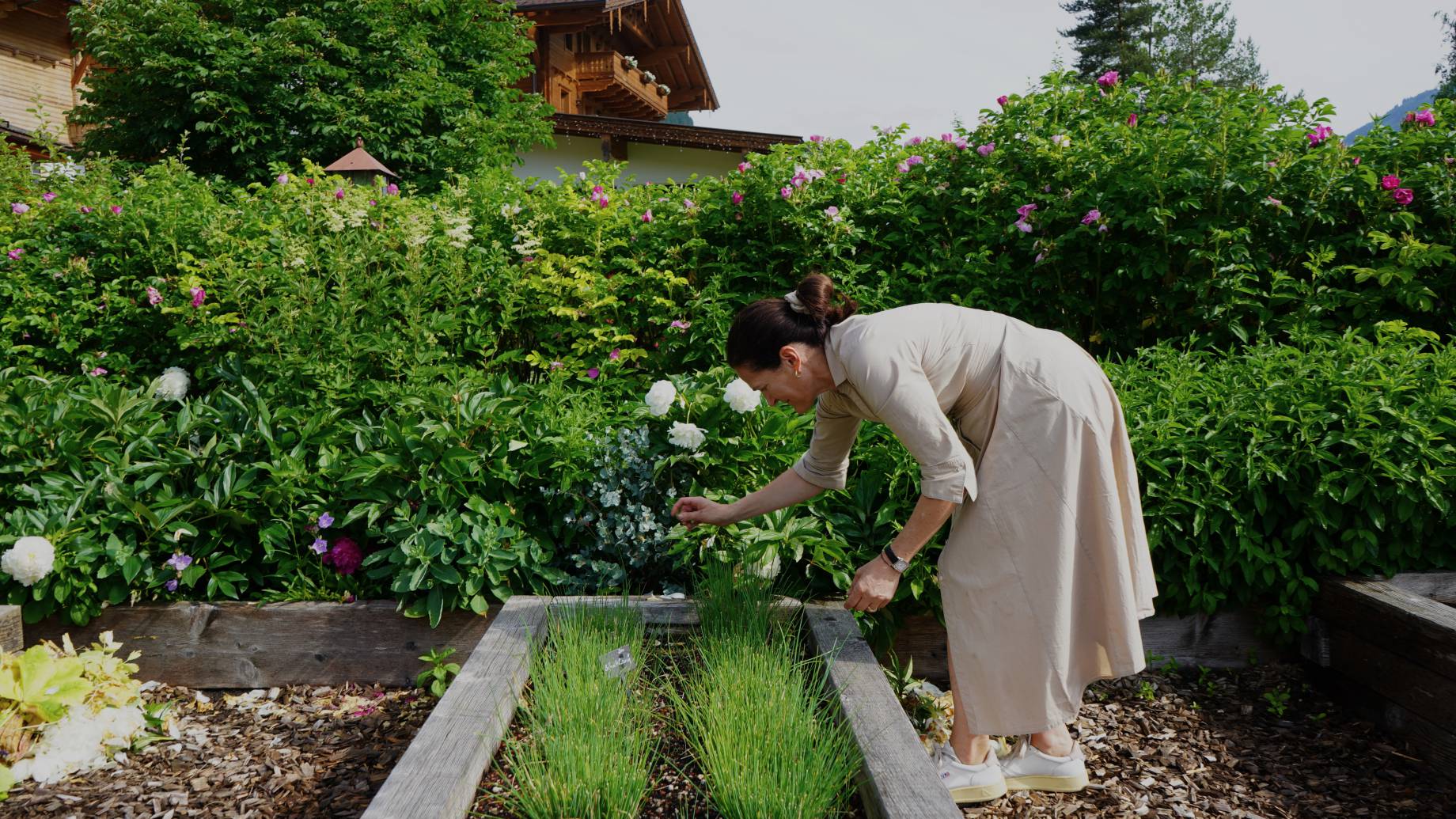 Der Kräutergarten steht auch für die nachhaltige Philosophie des Resorts: Kurze Wege, biologische Pflege und der bewusste Umgang mit Ressourcen werden bei uns am Moar Gut gelebt. So pflegt Hoteleigentümerin Elisabeth Kendlbacher das Resort und den Garten mit viel Liebe und Hingabe. Denn auch die Kräuter und Pflanzen benötigen Aufmerksamkeit und einen bewussten Umgang.