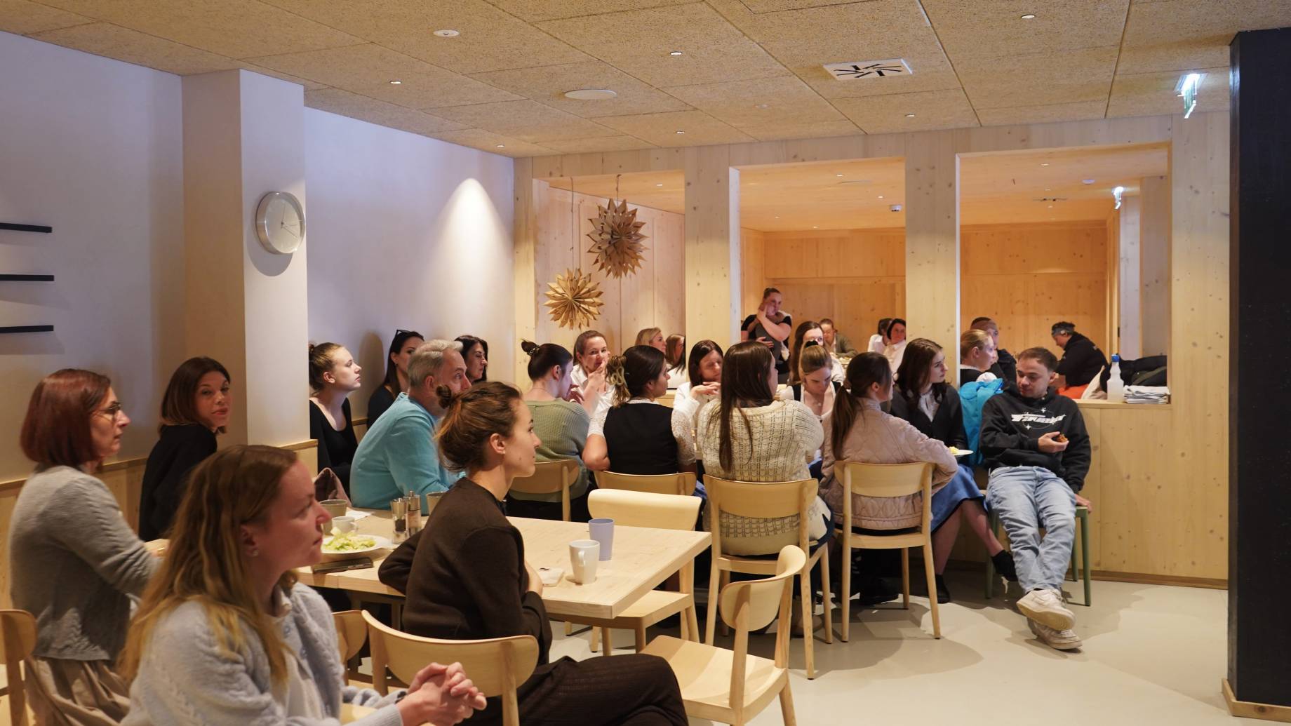 Wo unsere Weihnachtsfeier stattfindet? Natürlich im Mitarbeiterrestaurant mundORT – einem Ort, an dem sich unsere Mitarbeiter:innen wohlfühlen. Ein Platz zum Abschalten, Durchatmen und Genießen. Hier kommt man zusammen, tauscht sich aus und lernt sich abseits des Arbeitsalltags noch besser kennen.