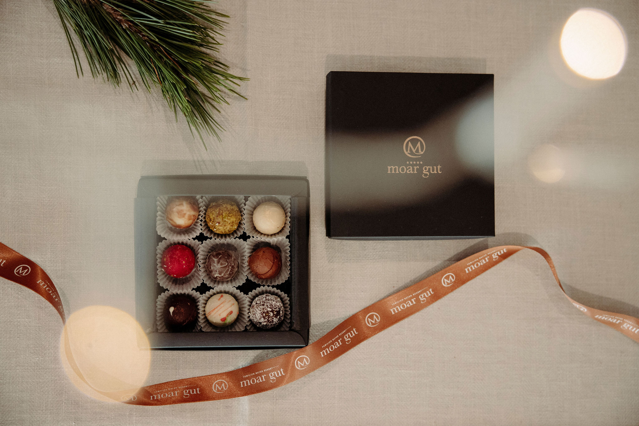 Die hausgemachten Moar Gut Pralinen sorgen für Genussmomente an den Festtagen. Ob Marzipan, Nougat, Eierlikör oder Glühwein. Die unterschiedlichsten Sorten sind liebevoll verpackt und beschenken mit Gaumenfreuden.