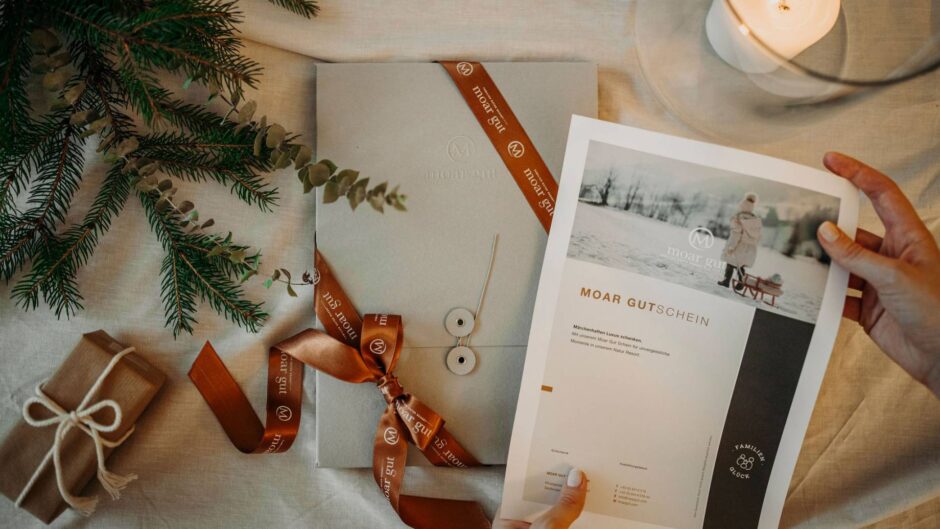 Gutscheine sind die perfekte Gelegenheit, um Zeit zu verschenken. Zeit bei einem Urlaub im Moar Gut, bei einer Massage im SPA oder beim Reiten auf unseren Isländern. Mit diesem Geschenk liegt der Zauber der Wahl in den Händen des Beschenkten. Weihnachten wird nicht nur festlich, sondern auch persönlich.