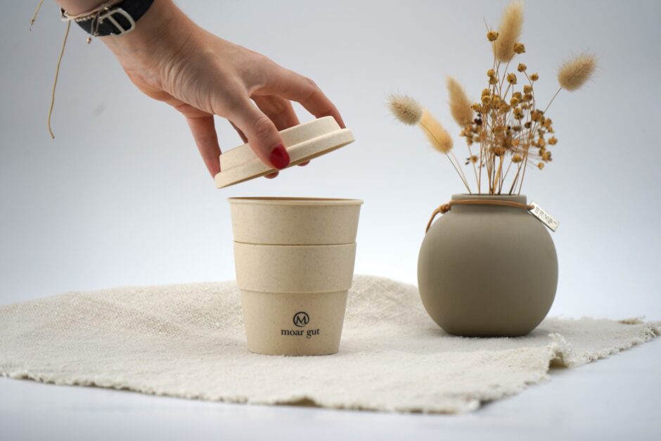 Der stylische Moar Gut Kaffeebecher ist immer ein Hingucker. Und vor allem auch umweltfreundlich!