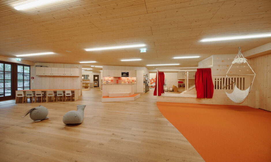 Der Natur Kinderhof am Moar Gut ist in zwei Bereiche gegliedert. Den Eltern-Kind-Bereich, in welchem die Familien gemeinsame Abenteuer erleben können, und dem betreuten Bereich. Der gesamte Natur Kinderhof wurde nachhaltig erbaut und ist 100% kunststofffrei. Alle verwendeten Materialien stammen direkt aus der Natur. Von Holz über Stein bis zu Loden. Auch die altersgerechten Sinnesspielzeuge sind 100% aus natürlichen Materialien.