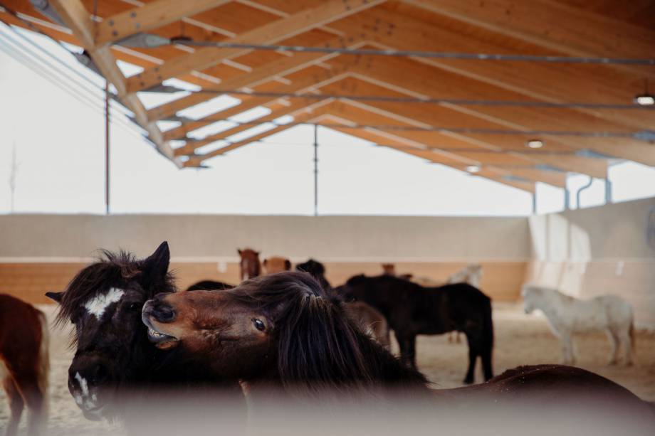 Aktuell haben unsere Isländer Pferde richtg dickes, zotteliges Winterfell. Um ihre Fitness beizubehalten und sich ordentlich auszutoben, dürfen die Moar Gut Isis mindestens einmal täglich in die neue Reithalle. Freudensprünge, Buckeln und Wälzen inklusive. Ein eindeutiges Indiz, dass sie sich in der Halle wohl fühlen und sie deren Vorzüge genießen und reichlich auskosten. Doch bald, ganz bald, wird die Halle neben dem Wiehern und Schnauben der Pferde auch wieder durch Kinderlachen und die Stimme der Reitlehrerinnen beim Unterricht erhellt. Darauf freuen sich die Vierbeiner vermutlich ebenso sehr, wie wir selbst.